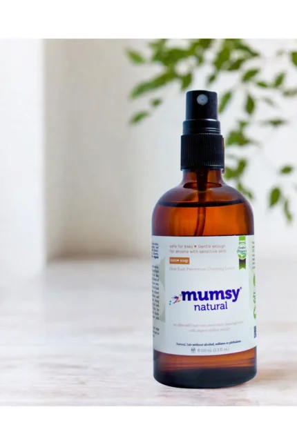 Mumsy Natural Bebek Losyonu, hassas bebek derileri için özel olarak formüle edilmiş tümüyle doğal bir bakım ürünüdür. Organik lavanta ve calendula özü, cildi yatıştırmaya yardımcı olurken shea yağı ve prebiyotikler uzun süreli nem sağlar. Alkol, paraben ya da sentetik renklendirici içermez. Hafif dokusu hızla emilir, cilt yüzeyinde yağlı his bırakmaz. Günde bir veya iki kez kullanım için idealdir; özellikle banyo sonrası uygulandığında bebek cildine yumuşaklık, esneklik ve rahatlama kazandırır.